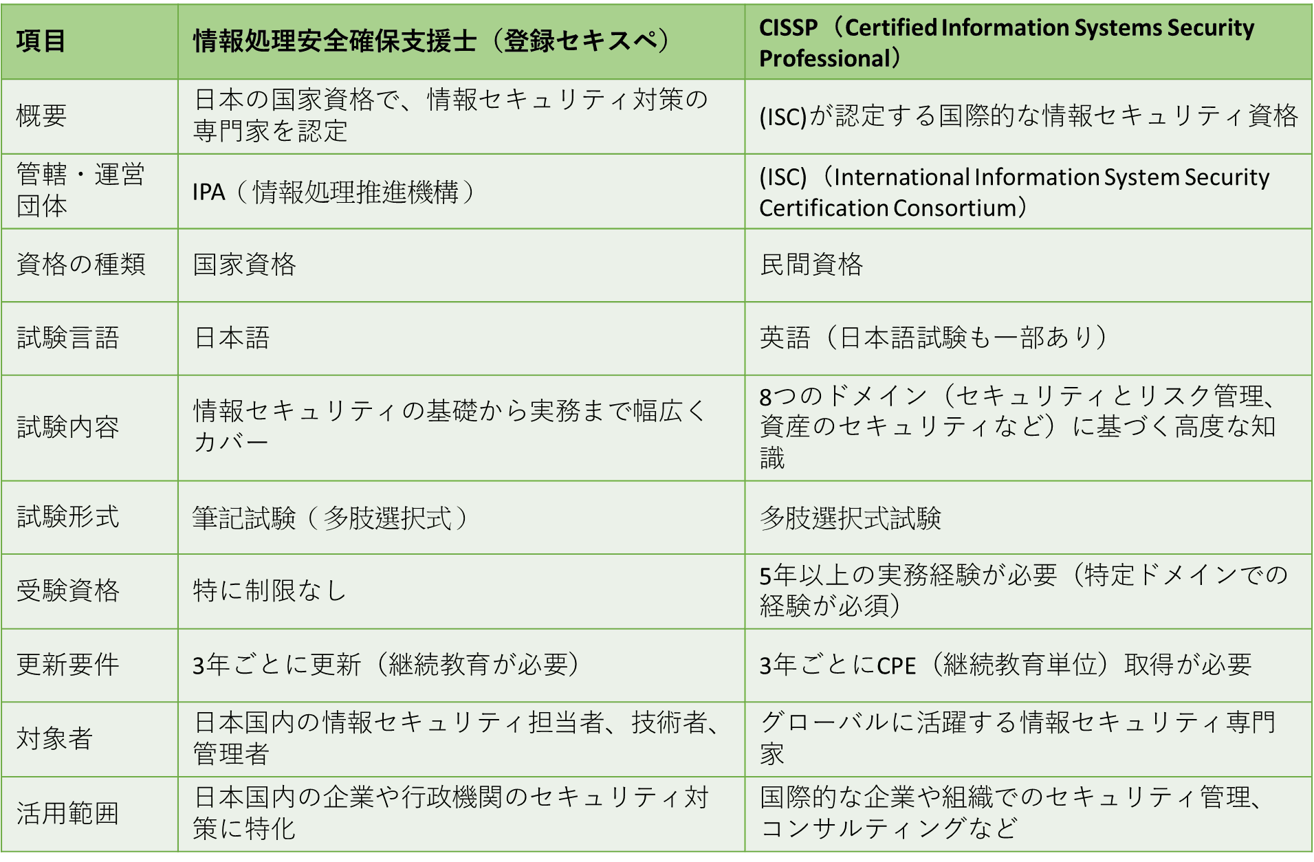 セキュリティ関連の資格 - 情報処理安全確保支援士、CISSP