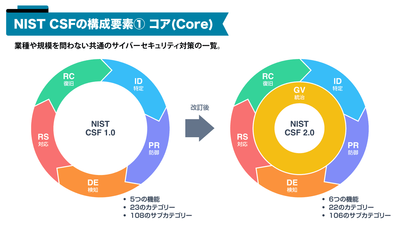 NIST CSF 2.0では、約10年ぶりの大幅な改訂が行われ、主に以下の点が更新されました: