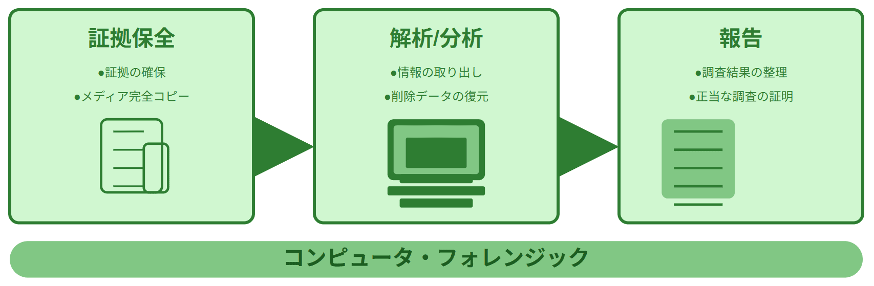デジタルフォレンジックは、「コンピューターを徹底的に家捜しする」技術です。セキュリティインシデント発生後、システムやネットワークから証拠を収集・分析し、攻撃の全容を解明します。